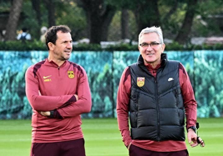 10月4日,中国队主发挥伊万科维奇(右)带队历练。新华社发(陈浩明摄)